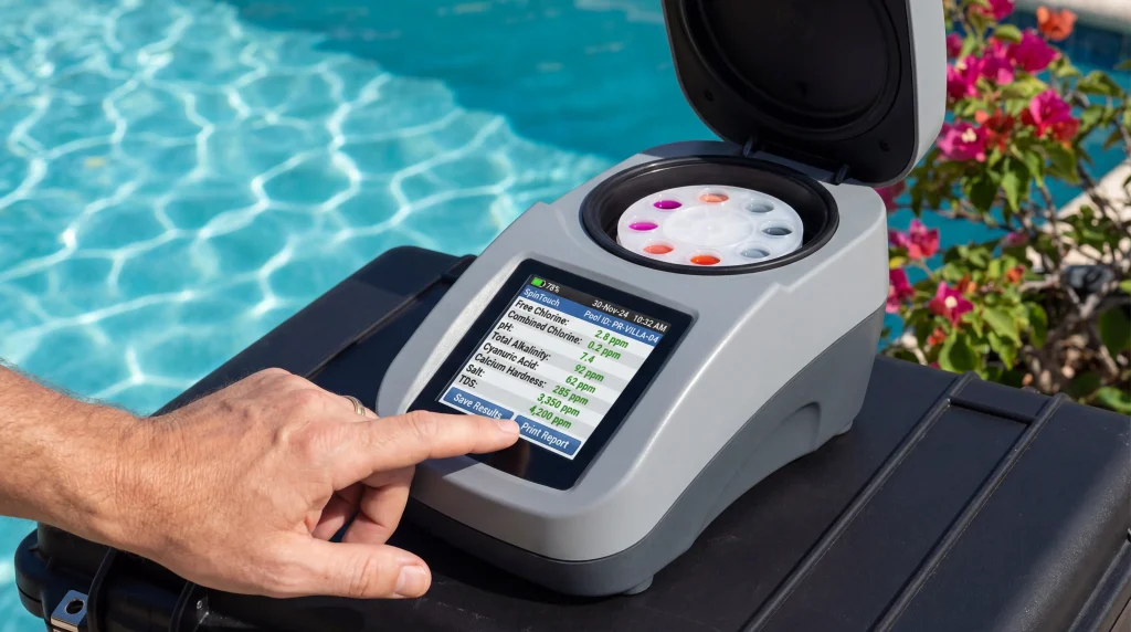 The testing method matters too. Color-matching test strips provide approximations. Reagent-based drop tests offer better accuracy. But photometric testing—using a device like the WaterLink SpinTouch—delivers laboratory-grade precision by measuring light absorption through the water sample, according to Pool & Hot Tub Alliance professional standards. That precision matters when you’re trying to understand why a pool keeps having problems despite “proper” chlorine levels.